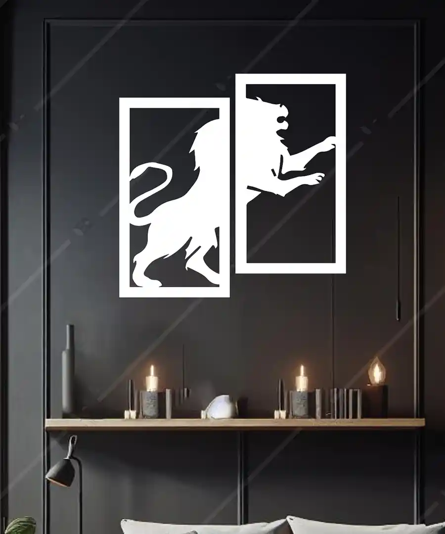 Aslan Ahşap Tasarım Aslan Duvar Dekoru 2’li – Modern ve Zarif Bir Dokunuş